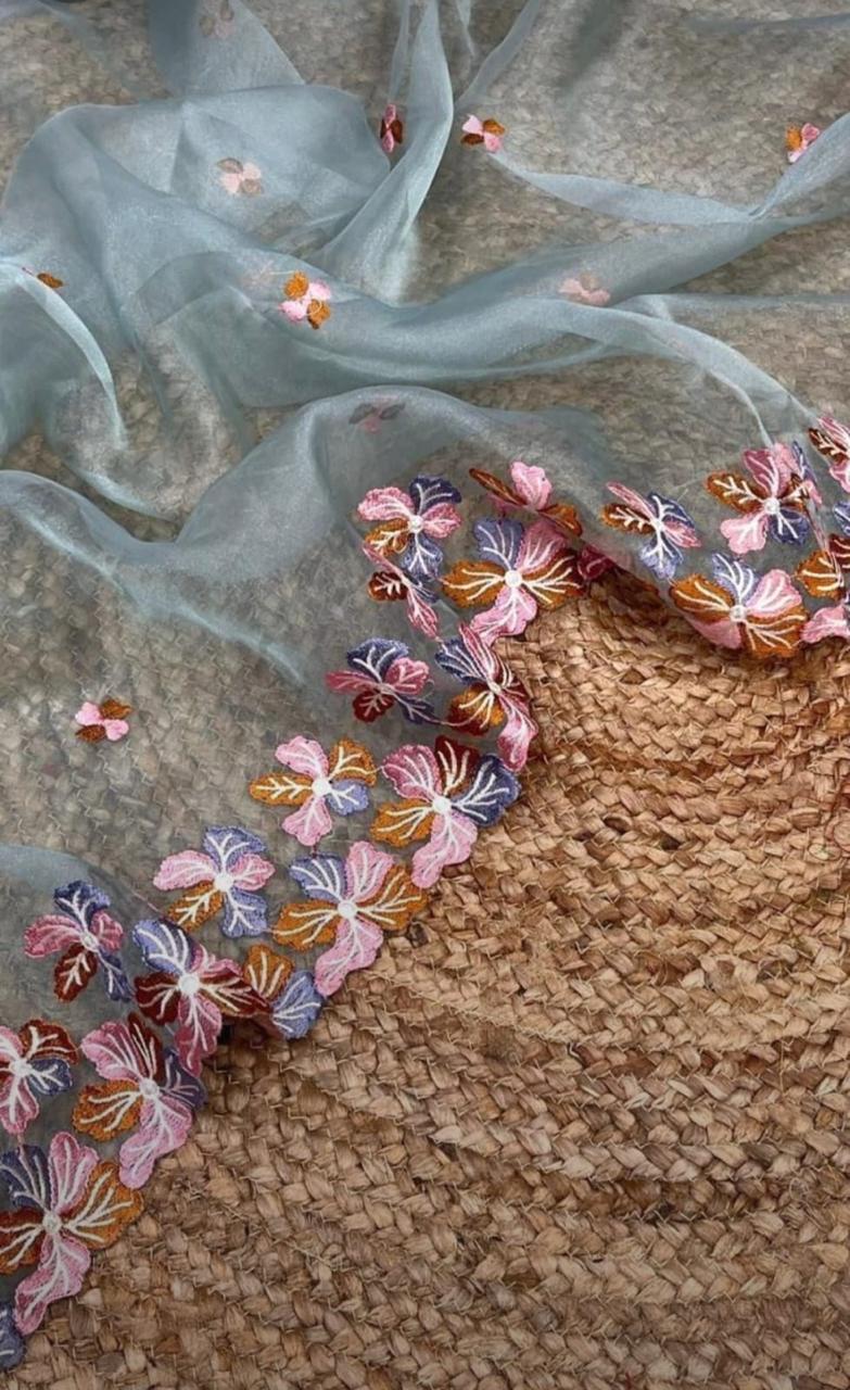 Elevate your style with this Pure Organza Silk Embroidered Saree, designed for a light, luxurious, and graceful drape. The sheer organza fabric paired with fine embroidery gives it a rich yet effortless charm—perfect for weddings, parties, and special celebrations.